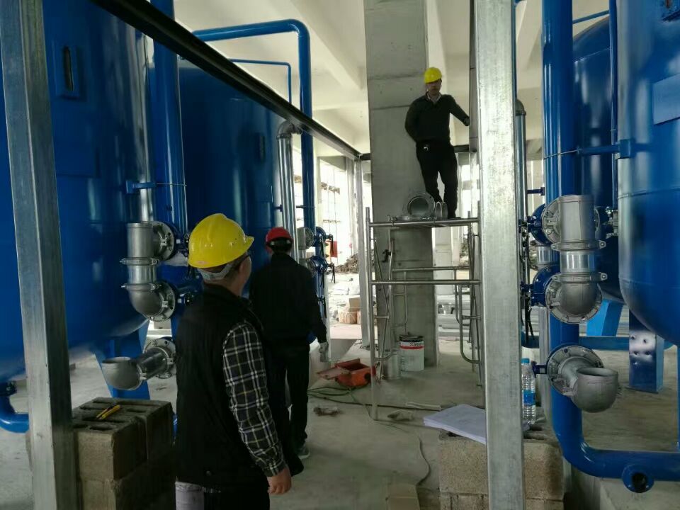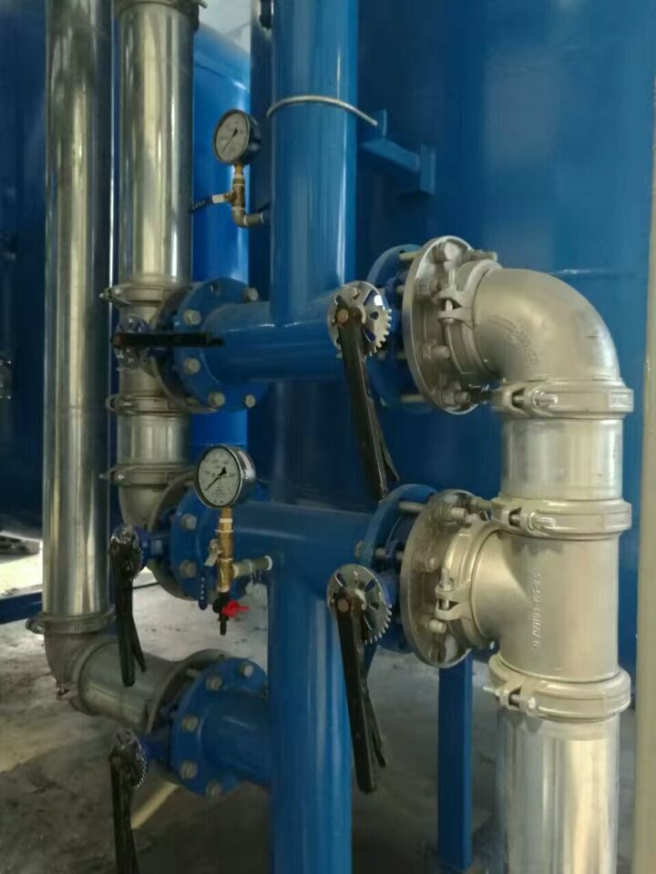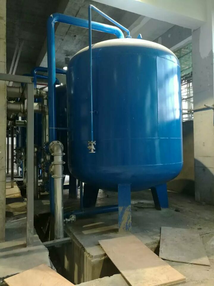 蘇州榮軒環(huán)保設(shè)計(jì)的這套自來水預(yù)處理設(shè)備,主要目的是去除原水中的懸浮物、膠體、有機(jī)物和余氯等妨礙后續(xù)反滲透運(yùn)行的雜質(zhì),自來水首先進(jìn)入砂濾罐:φ2.6m*4.4(總高),垂高2.0m,鋼板厚度10mm,級(jí)別Q235,內(nèi)表面襯膠防腐5mm,外表面SA2.5級(jí)噴砂除銹至金屬光澤后,噴涂阿克蘇諾貝爾油漆。內(nèi)部填充粗細(xì)粒徑石英沙,石英砂過濾器主要去除水中的懸浮物和膠體,水中大部分懸浮物和膠體在經(jīng)過濾料截留而去除。